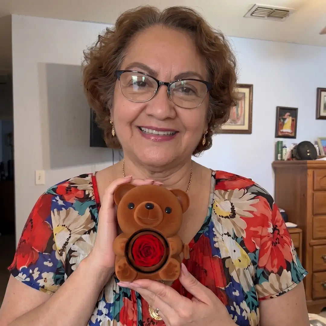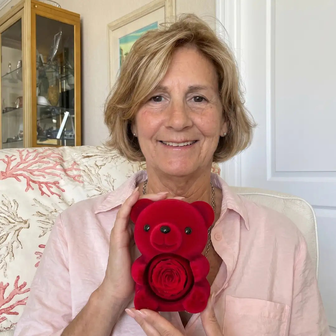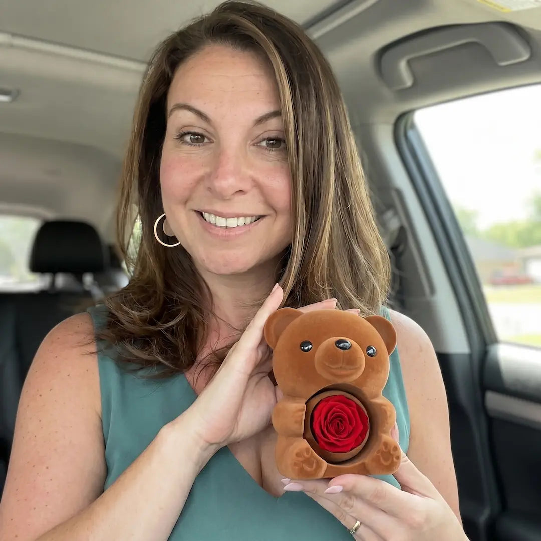 Una Rosa Vera Stabilizzata per durare in eterno, che svela una collana con incisioni personalizzate.