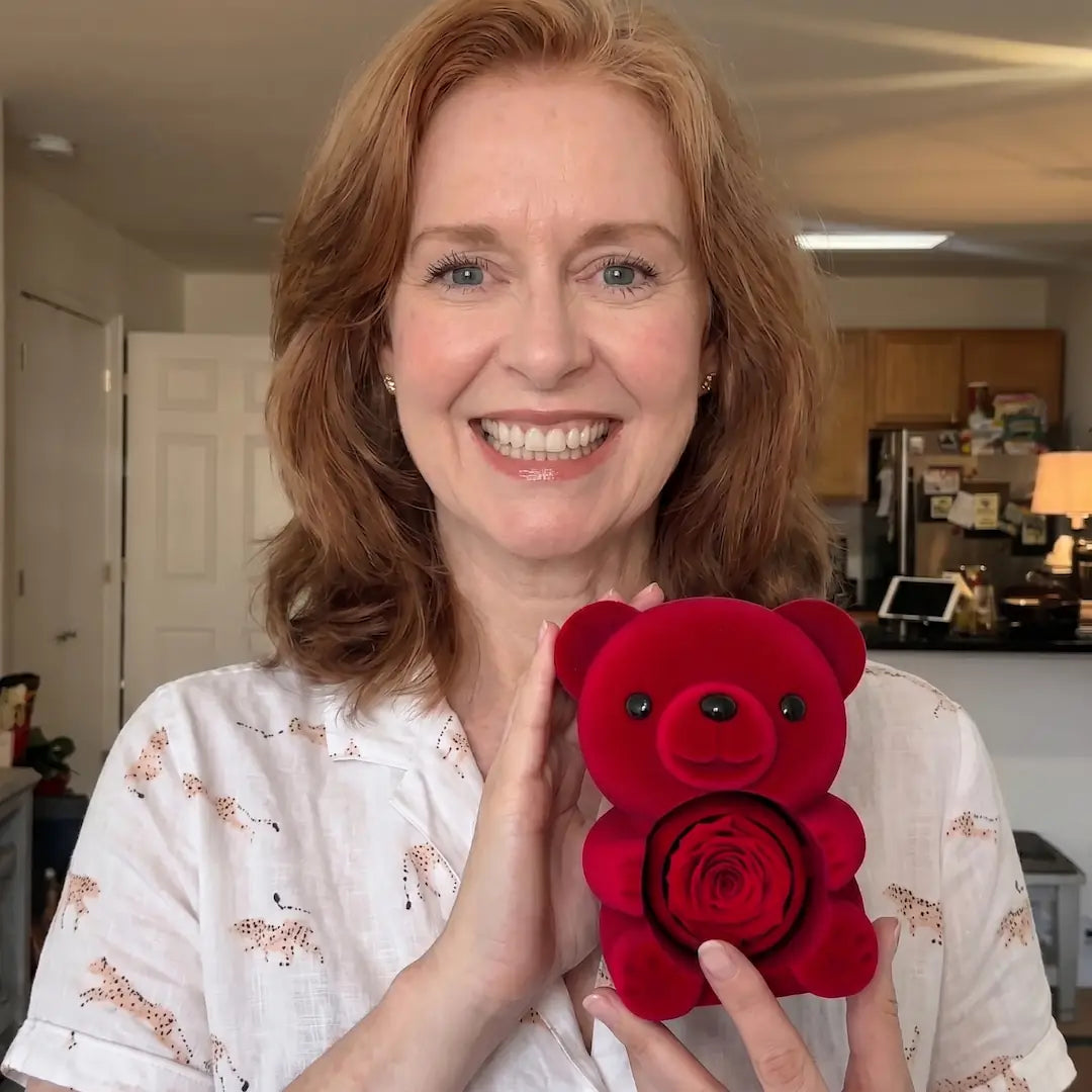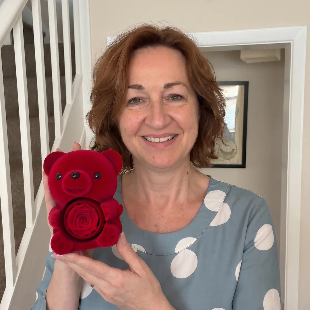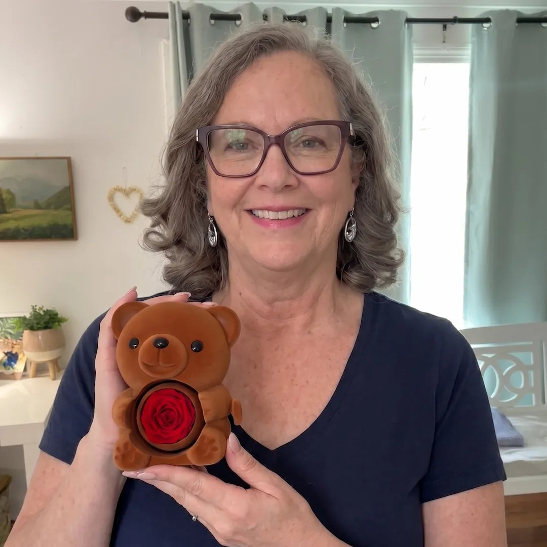 Una Rosa Vera Stabilizzata per durare in eterno, che svela una collana con incisioni personalizzate.